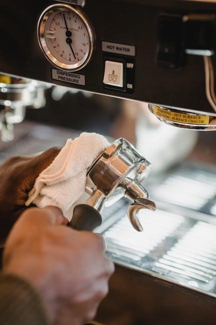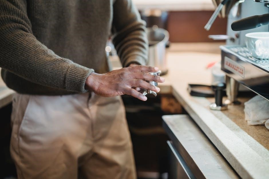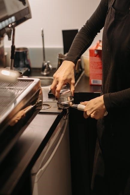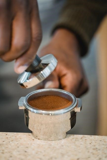 Ensure the basket is properly seated within the portafilter before locking it into the group head. Regularly clean the portafilter and baskets to remove coffee residue, preventing clogging and ensuring optimal espresso quality. Proper basket selection and consistent tamping are vital for achieving a balanced and flavorful shot. Understanding these components is key to mastering espresso creation.